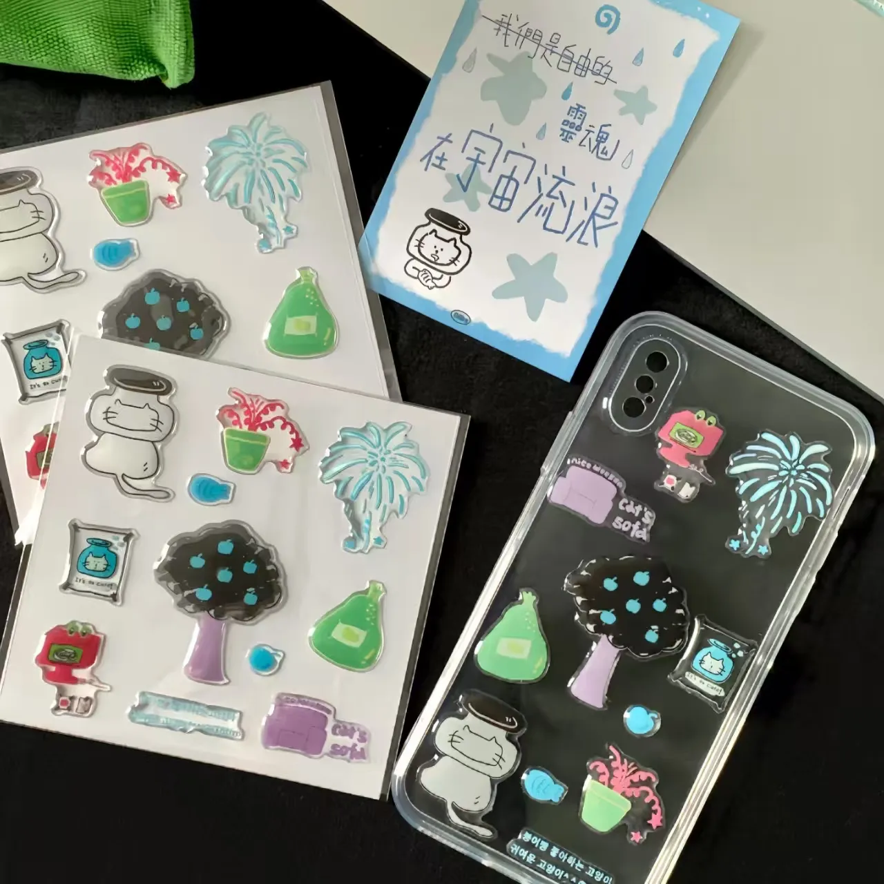 Stiker resin epoksi kartun 3Dyaiku decals 3D khusus sing nampilake desain tema kartun. Saben stiker dilapisi lapisan resin epoksi transparan sing dhuwur, sing diobati liwat proses lem netes kanggo nggawe tekstur sing wungu, lancar, lan elastis.