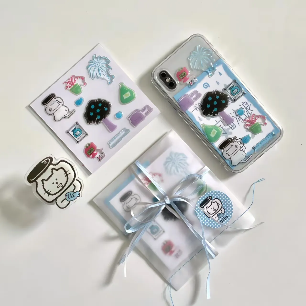 Stiker resin epoksi kartun 3Dbisa dikemas ing tas OPP individu sing disesuaikan utawa kertu backing + set stiker. Kita bisa nyithak logo merek sampeyan ing kemasan, nggawe produk sing cocog kanggo hadiah utawa dodolan eceran.