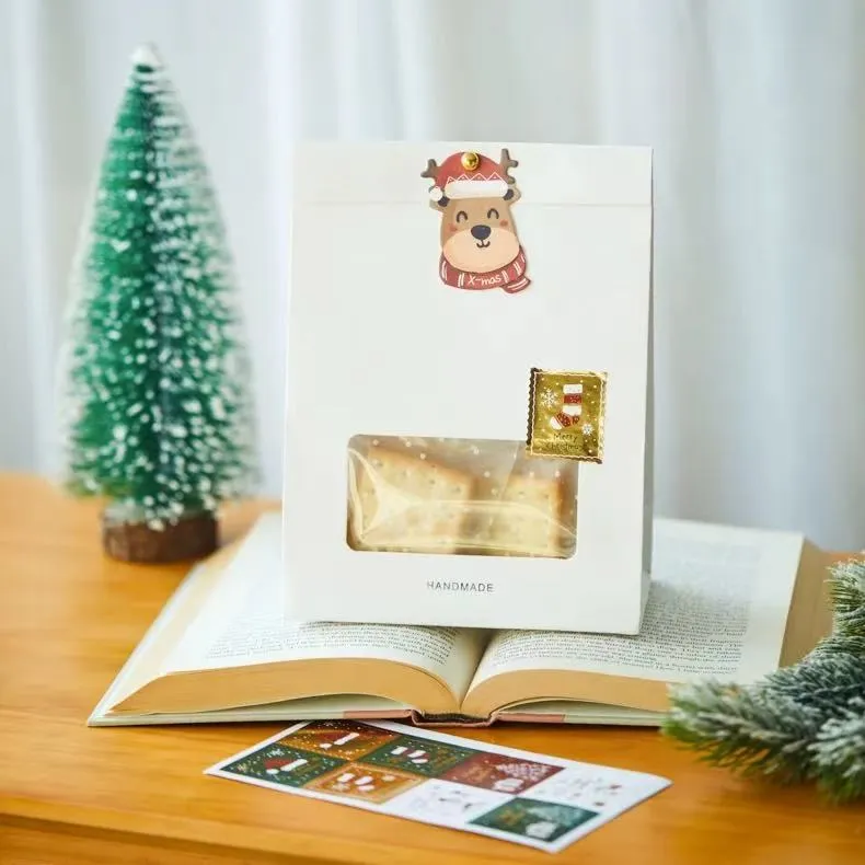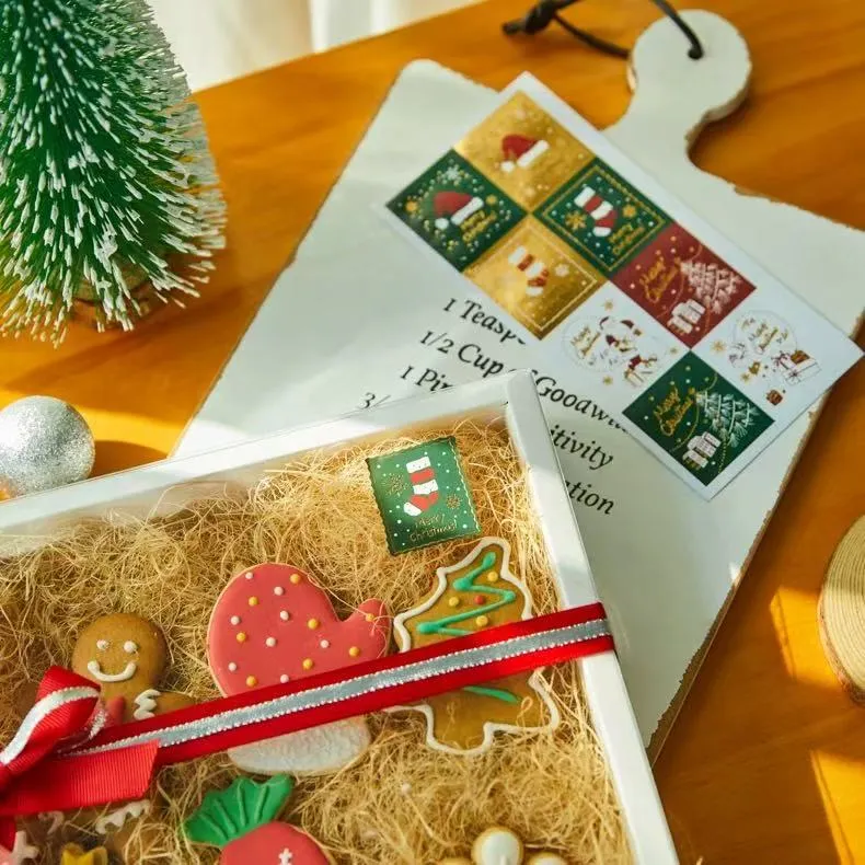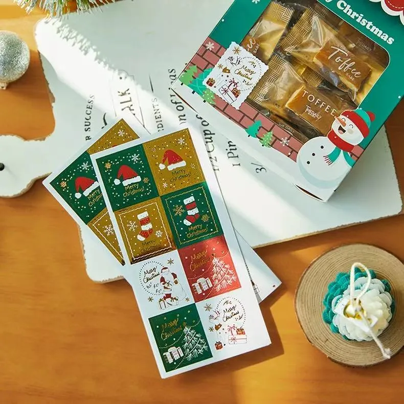 Stiker Natal Stok Jojo Pack nampilake kertu Natal Retro minangka latar mburi, nuduhake macem-macem stok gaya stamping. Sisih pinggir duwe efek perforated, menehi tampilan klasik lan nostalgia.