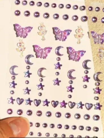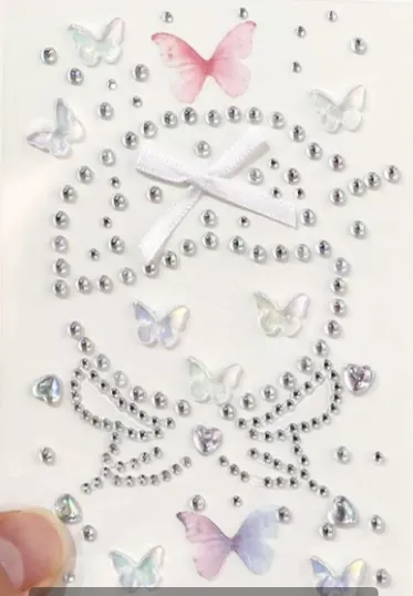 Stiker dandanan berlian iki minangka aksesori kecantikan kreatif sing dirancang dening Jojo Pack Stickers khusus kanggo para penggemar kecantikan, seniman dandanan panggung, lan dandanan festival. Digawe saka bahan ramah lingkungan sing berkualitas tinggi, nggabungake estetika fashion karo desain praktis, ngidini nggawe tampilan dandanan sing apik lan apik banget.
