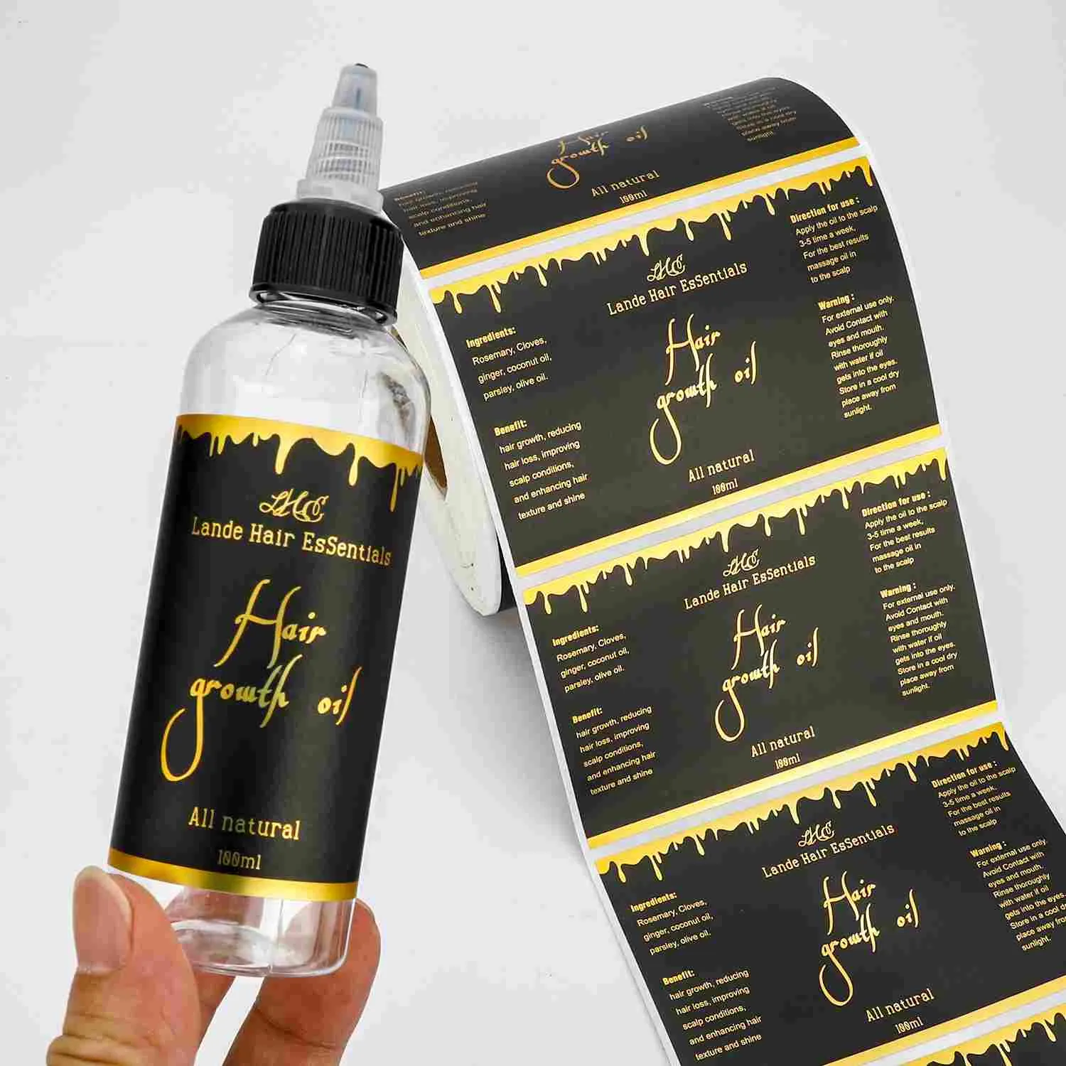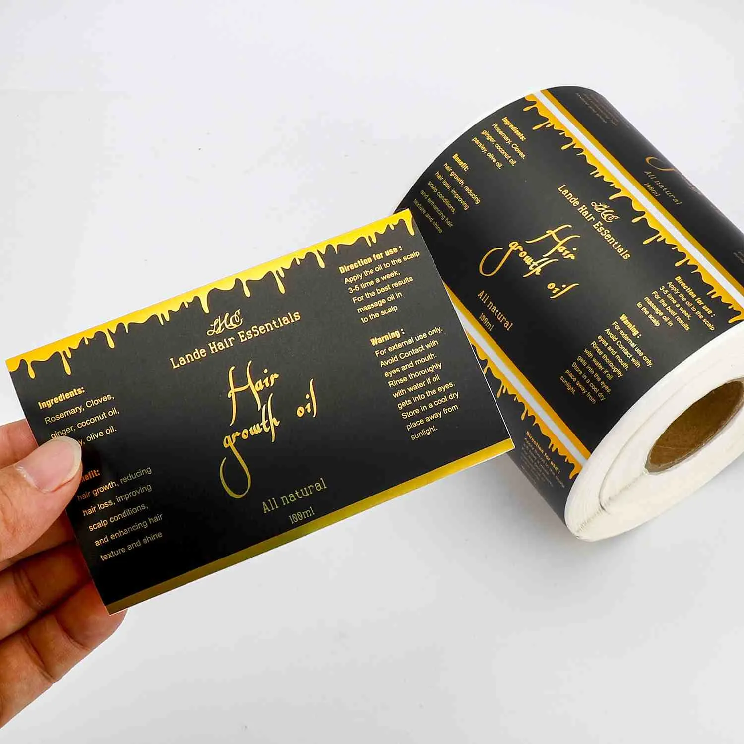 Label foil emas sing diprodhuksi dening perusahaan kita utamane nggunakake teknologi percetakan foil emas kanthi tliti dhuwur. Foil logam dicithak kanthi tepat ing permukaan substrat, nggawe tekstur metalik sing dhuwur, nyorot gaya merek. Produk kasebut ndhukung kustomisasi pribadi kanthi dimensi lengkap, pola panutup, teks, ukuran, wujud, materi, lan warna foil emas. Bisa ditrapake sacara wiyar ing kemasan, identifikasi, lan panyegelan macem-macem produk kayata omben-omben, kosmetik, lan sapiturute, mbantu merek nambah pangenalan lan nilai produk, uga nimbang estetika lan kepraktisan.