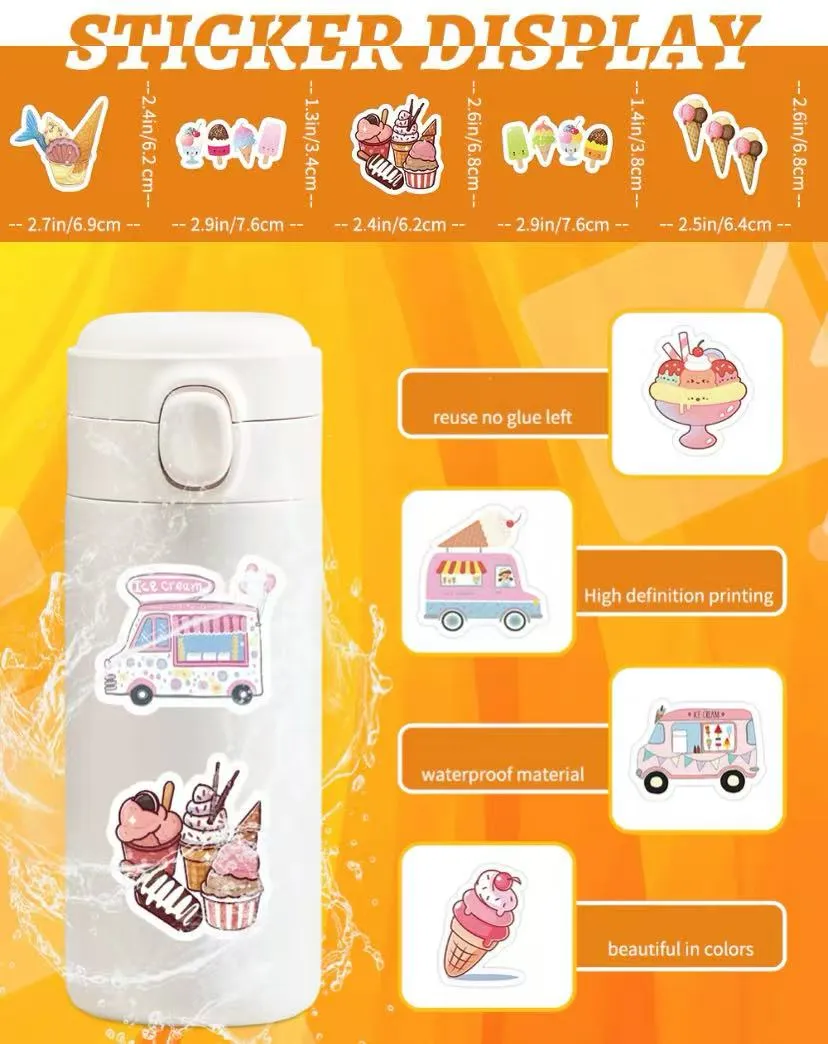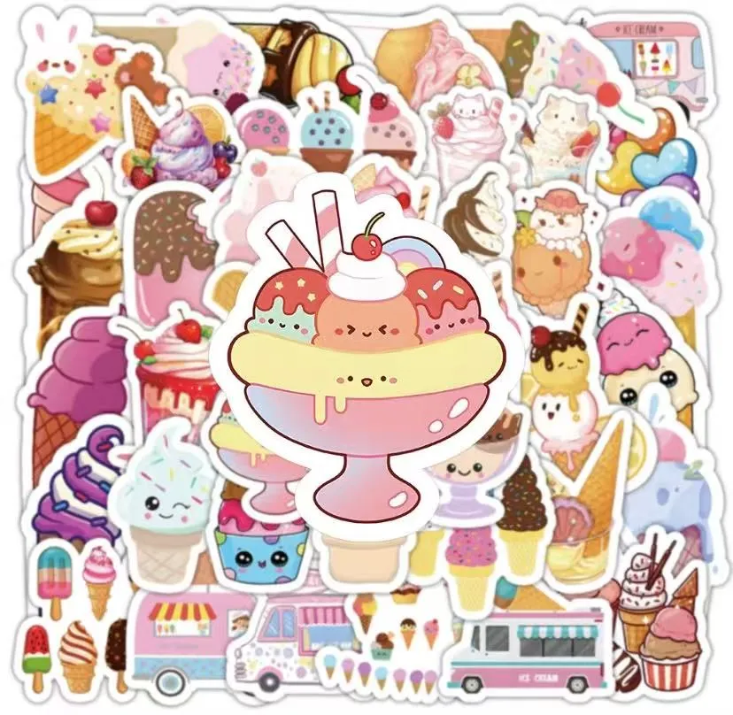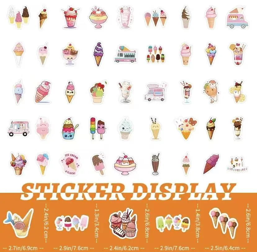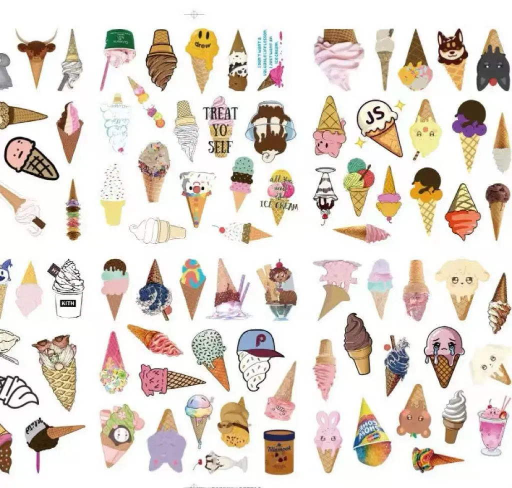 Stiker es krim iki sing diasilake dening Jojo Pack. Iki nampilake unsur es krim lan saben stiker katon gedhe banget lan eseman sing nyenengake, kanthi cepet ngganggu barang-barang kanthi vitalitas musim panas.