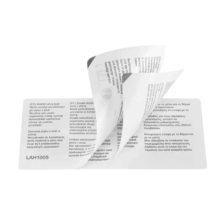 Label parfum multi ply JOJO Pack kasedhiya ing macem-macem bahan, kalebu kertas, vinyl, polypropylene, polyester, PVC, lan sapiturute, cocok kanggo skenario aplikasi sing beda.
