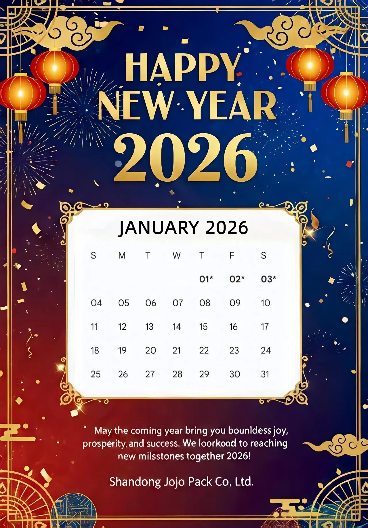 Nalika Taun Anyar 2026 nyedhaki, kita pengin ngucapake matur nuwun sing tulus kanggo kabeh kepercayaan lan dhukungan pelanggan sing terus-terusan marang perusahaan kita, produsen stiker profesional Cina. Sesuai karo peraturan liburan nasional ing China, kita kanthi iki ngumumake pengaturan liburan Taun Anyar kaya ing ngisor iki, kanggo mbantu sampeyan nggawe rencana bisnis sing tepat sadurunge.