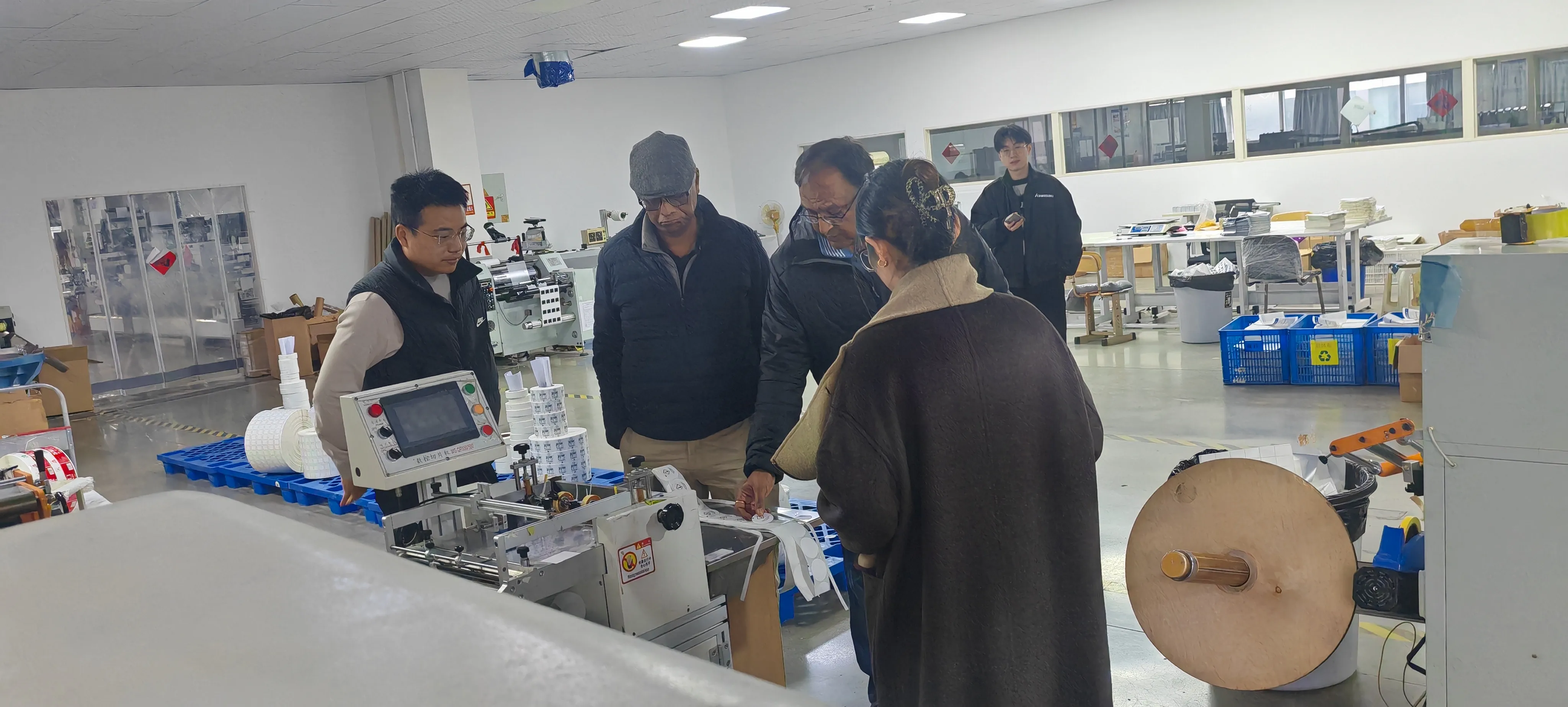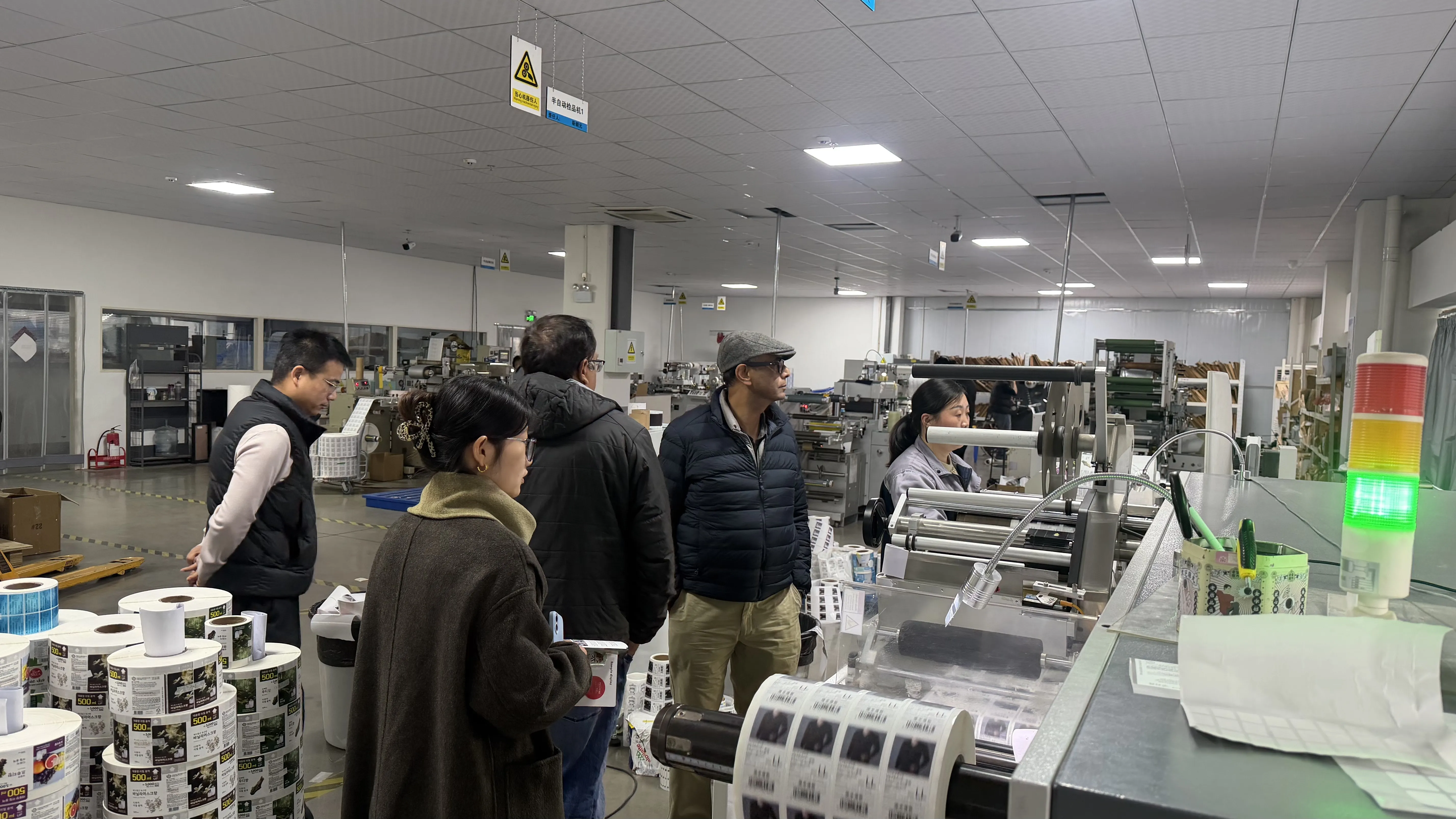 Sajrone kunjungan kasebut, diiringi pimpinan perusahaan lan kepala departemen sing relevan ing saindenging, klompok klien India terus-terusan mlebu ing wilayah inti perusahaan, kayata bengkel produksi, pusat inspeksi kualitas lan gudang bahan mentah, kanggo mirsani kabeh proses label kemasan saka pilihan bahan mentah, printing presisi, pambentukan die-cutting nganti inspeksi produk rampung.