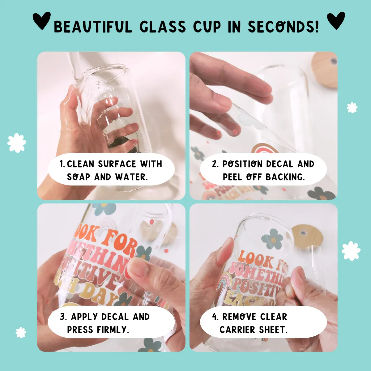 1. Mesthekake lumahing cangkir kaca 16oz resik, bebas minyak, lan minyak, ngilangke alon-alon nganggo bantalan alkohol utawa kain tanpa lemak kanggo mbusak bledug, utawa grease.