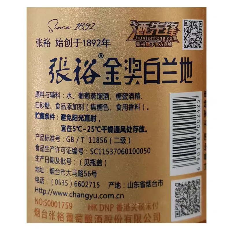 Brandy ikilabel anggurnggunakke Sheen saka aluminium foil kanggo nggawe cemlorot radiating. Jeneng merek lan jeneng produk, sing dadi titik fokus, disorot. Kabeh label nduweni finish matte, lan efek matte nambah rasa kemewahan lan kecanggihan label. Teknik kasebut penting banget kanggo merek anggur sing ngarahake pasar dhuwur.