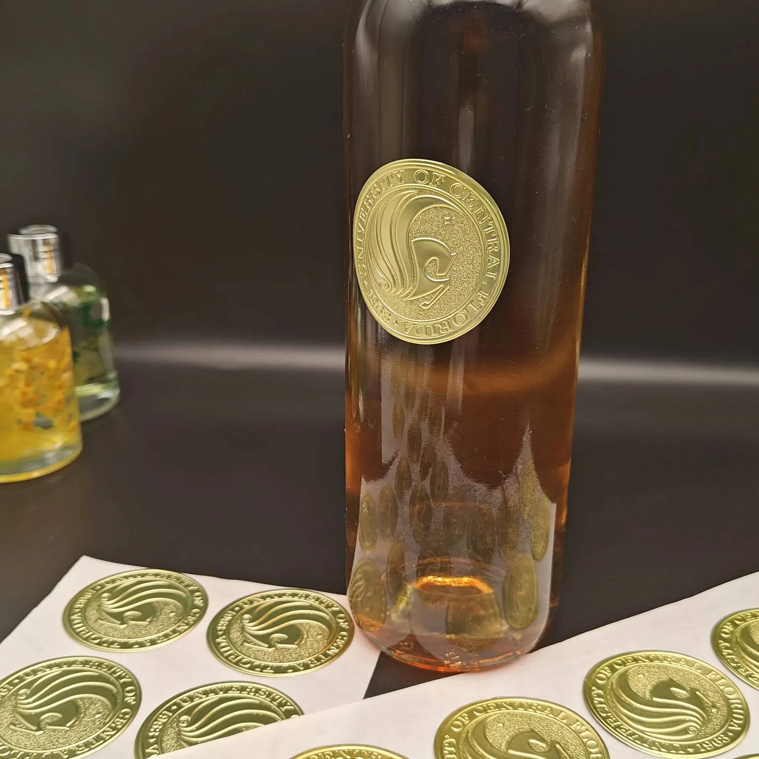 Bentuk bunder sing sampurna cocog karo lumahing gelas sudhut mlengkung, lan rincian empan / foil bisa nyorot logo merek, taun-taun vintaj, utawa seri produk ing awak botol, nggawe bungkusan luwih apik.