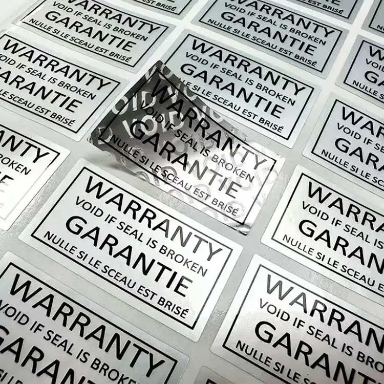 Label garansi garansi biasane ditrapake kanggo bagean kritis produk. Label iki dirancang kanggo bukti-bukti temper, yen ana sing nyoba mbukak, mbubarake, utawa ngowahi produk tanpa wewenang resmi, label kasebut bakal rusak.