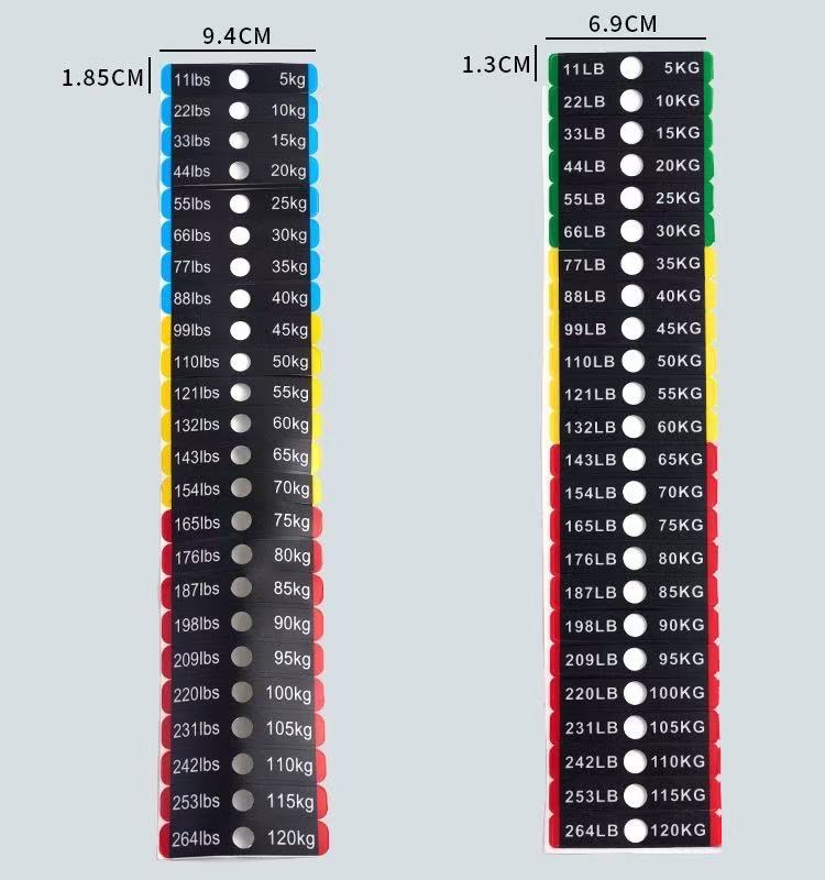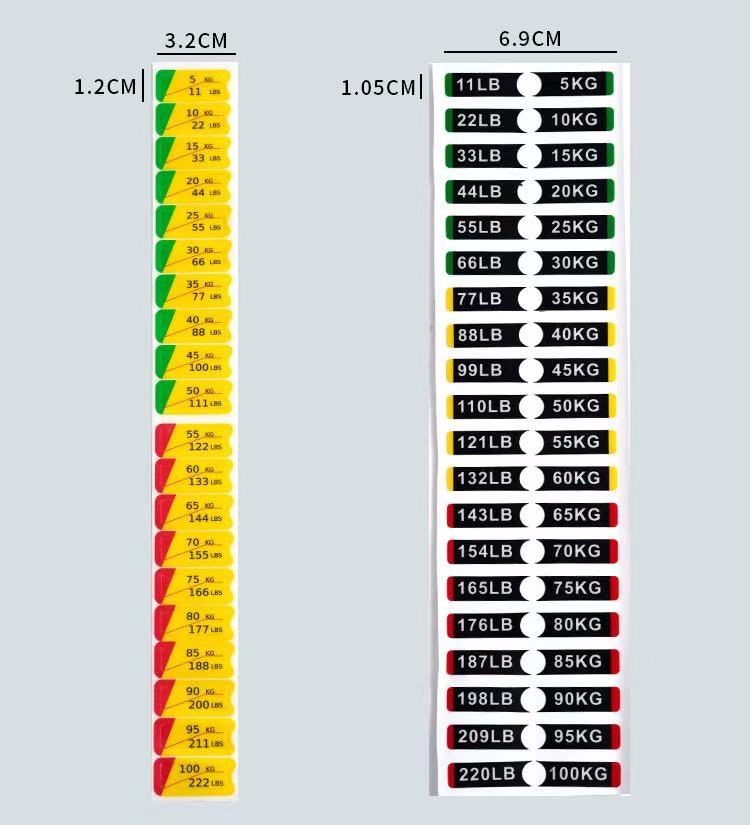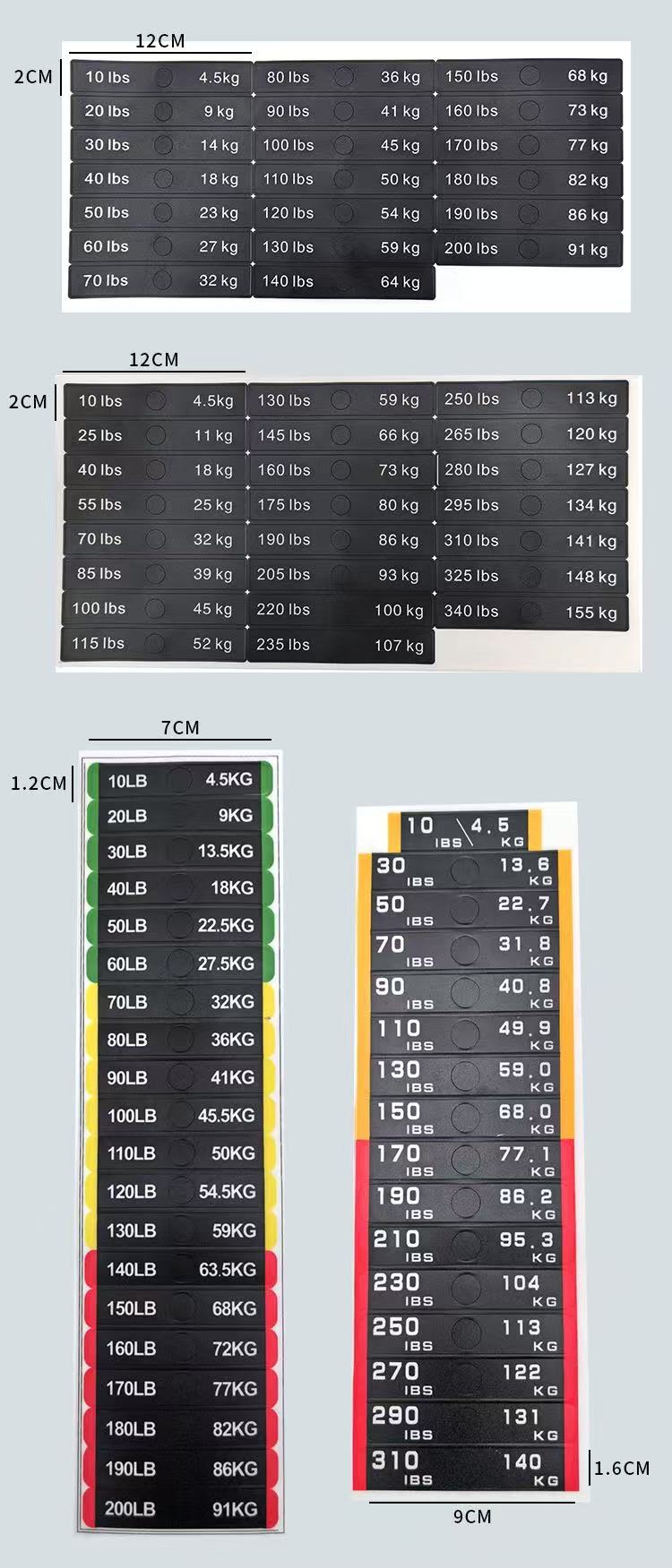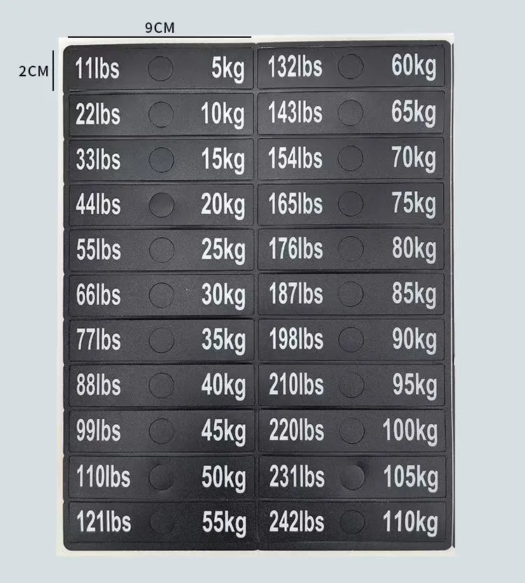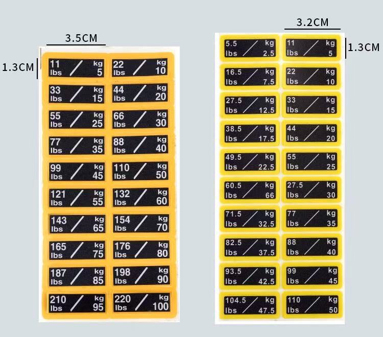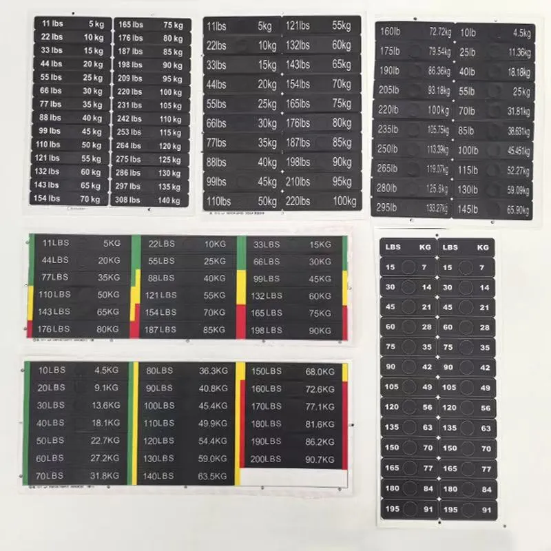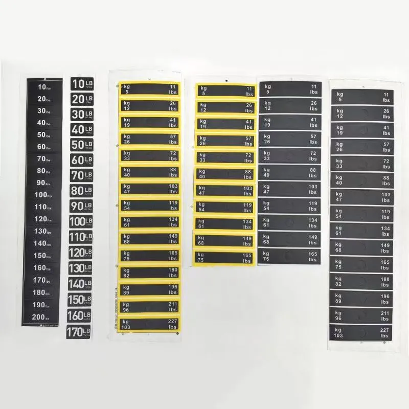 Digawe saka bahan kualitas premium, stiker iki tahan kanggo nyandhang lan luh saka saben dina. Teks sing dicithak tetep cetha lan ora luntur sajrone umur layanan peralatan fitness, njamin kinerja sing tahan suwe. Kanthi tandha bobot sing jelas, pangguna bisa nglacak kemajuan fitness lan nyetel target latihan, entuk manajemen latihan ilmiah.
