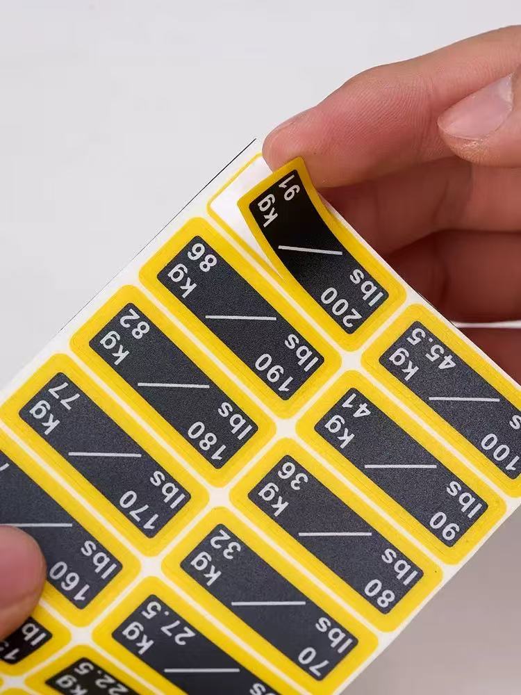 Stiker bobot kanggo blok bobot peralatan fitness iki minangka jinis stiker identifikasi sing dirancang khusus kanggo menehi label bobot peralatan fitness. Biasane digawe saka bahan PVC, lan sampeyan bisa ngrujuk menyang tabel parameter produk kanggo ukuran tartamtu. Nilai bobot kanthi jelas ditandhani ing stiker, ngidini pangguna kanthi cepet ngenali lan milih bobot latihan sing cocog.