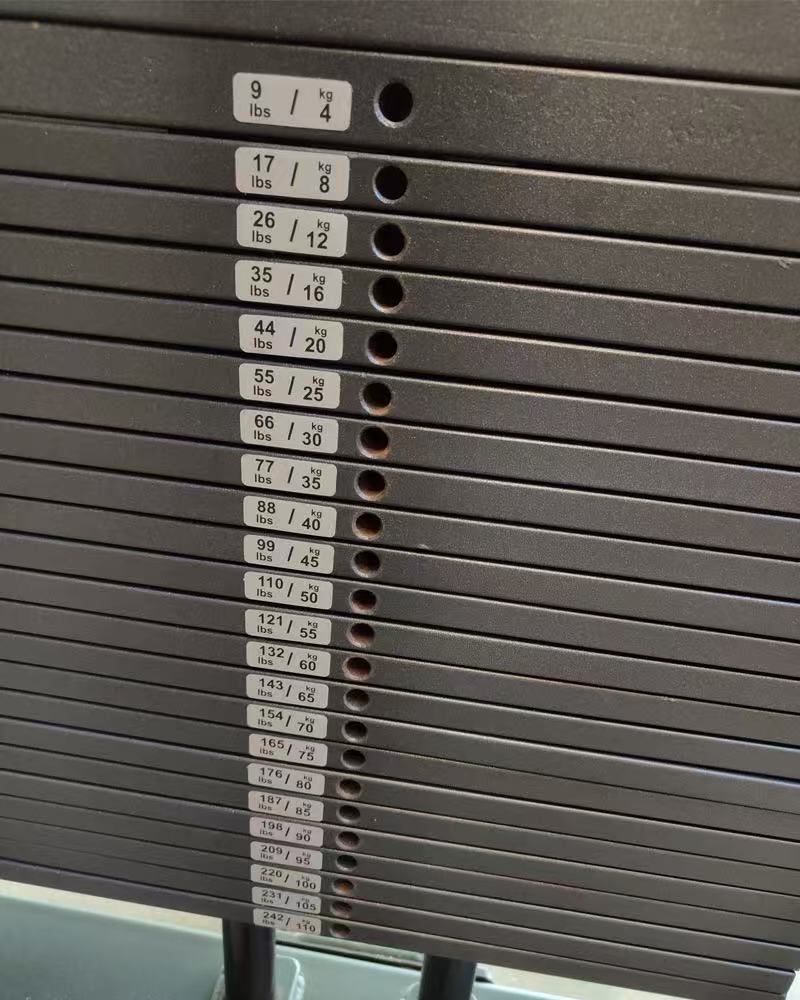 Saben stiker ditandhani kanthi jelas kanthi nilai bobot, ngidini pangguna kanthi cepet ngenali lan milih blok bobot sing cocog kanggo intensitas latihan, lan supaya ora kerep ngebotake nalika latihan.