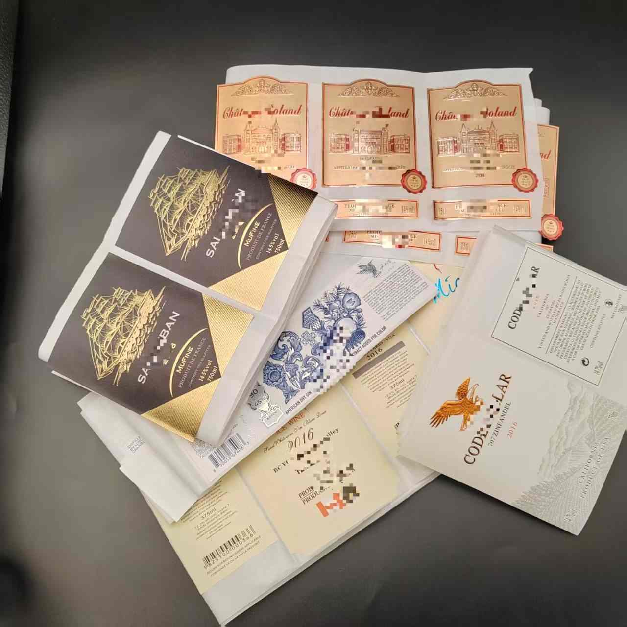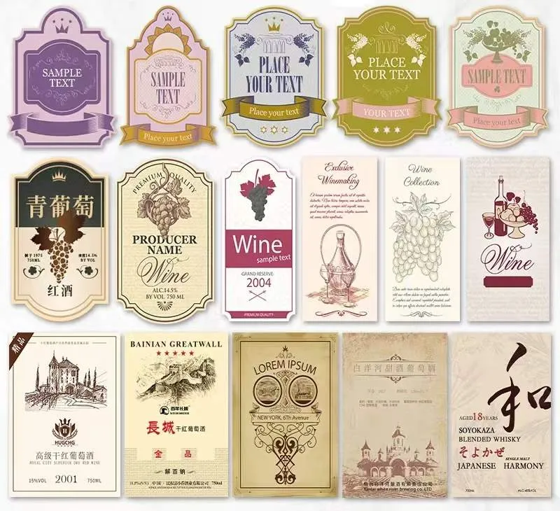 A: Ya, sampeyan bisa ngatur desain label label anggur kanggo nggambarake gaya merek. Iki kalebu unsur kaya logos merek, warna, pola, fombo metalik, tekstur matte lan liya-liyane.